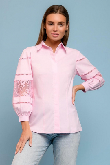 Фото товара 21901, розовая блузка с объемными рукавами и кружевной вставкой